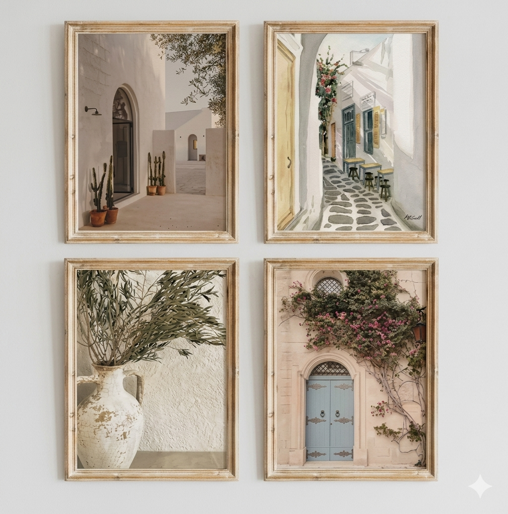 Mediterranean Escape Art Set | 4-Piece Sun-Drenched Gallery Wall Art