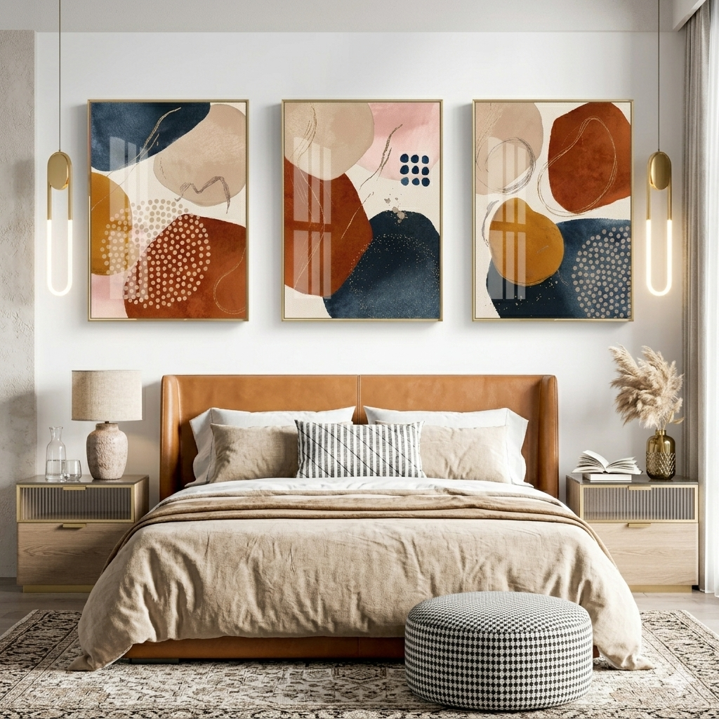 At 40x60cm per piece, this set is sized for impact. It is large enough to serve as a stunning focal point above a queen-sized headboard or a standard sofa, yet compact enough to fit beautifully in a modern office nook. The repetitive geometric motifs create a rhythmic flow that instantly makes a room feel "finished" and professionally styled.